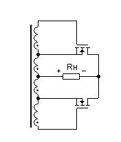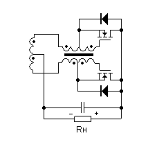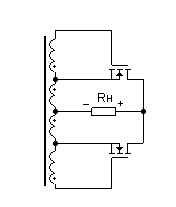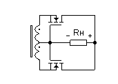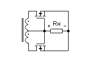 При работе СВ на нагрузку с ёмкостной реакцией необходимо управление транзисторами в зависимости от зарядного тока, что позволяет схема с трансформатором тока (с инверсным включением транзисторов и с управлением по цепи затвор — исток):