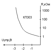 Зависимость сопротивления канала от напряжения затвора для транзистора типа КП303: