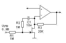 Коэффициент передачи можно изменять в пределах от 1 до 1000, при этом искажения малы вплоть до ограничения сигнала напряжением питания. Уменьшению искажений способствует линеаризирующая цепочка R2C1.