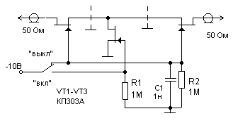В качестве примера на рисунке показан управляемый аттенюатор схемы АРУЗ магнитофона: