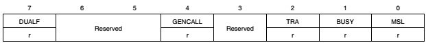 - MSL – показывает в каком режиме находится модуль I2C. 1 – мастер, 0 – слейв
