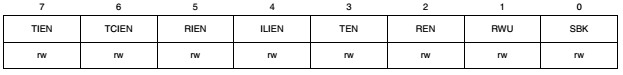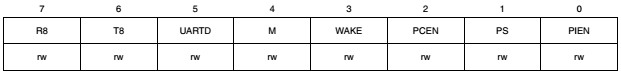 - T8 — сюда записывается 9-й передаваемый бит, если передача осуществляется в 9-битном режиме.