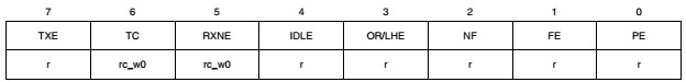 Отправляя и принимая данные через UARTнеобходимо контролировать биты данного регистра.